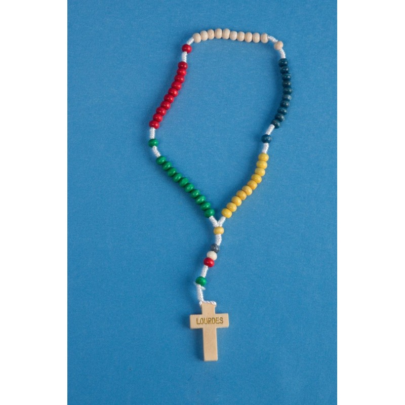 Petit chapelet Missionnaire monté sur corde tressée avec grains 4 mm en bois, multicouleurs. Longueur 24 cm