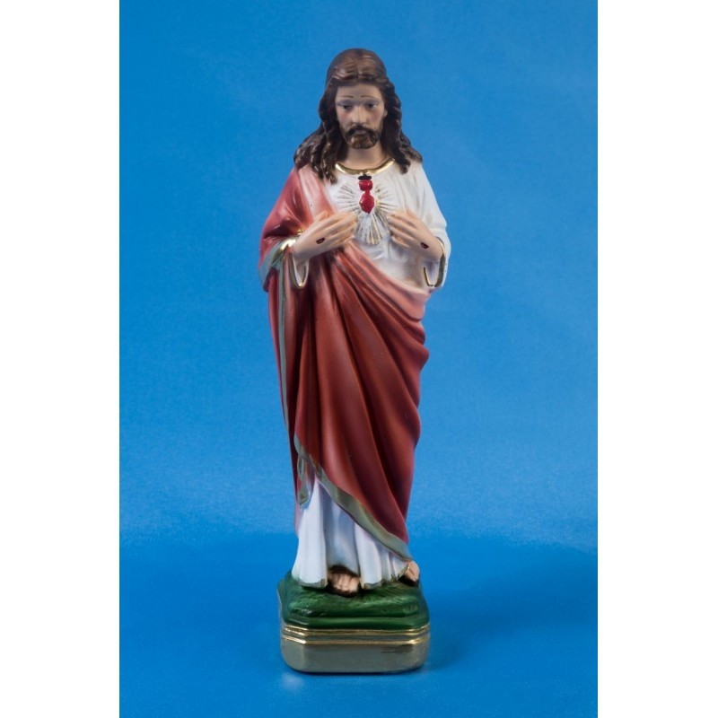 Statue en plâtre du Sacré Cœur de Jésus, entièrement peinte à la main. Fabriqué en Italie. Hauteur 20 cm